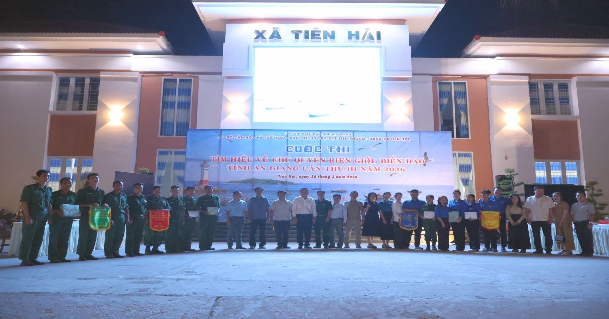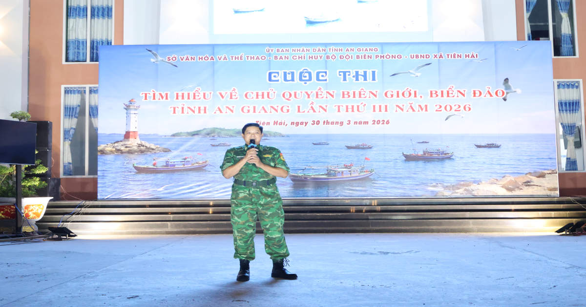 Tối ngày 30/03/2026, tại Quảng trường trung tâm xã Tiên Hải, Sở Văn hóa và Thể thao tỉnh An Giang phối hợp cùng Ban Chỉ huy Bộ đội Biên phòng tỉnh An Giang và Ủy ban nhân dân xã Tiên Hải đã tổ chức thành công Cuộc thi "Tìm hiểu về chủ quyền biên giới, biển đảo" tỉnh An Giang lần thứ III năm 2026. Cuộc thi diễn ra trong không khí sôi nổi, thu hút sự quan tâm, cổ vũ nhiệt tình của đông đảo cán bộ, chiến sĩ và nhân dân trên địa bàn xã.